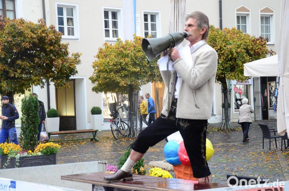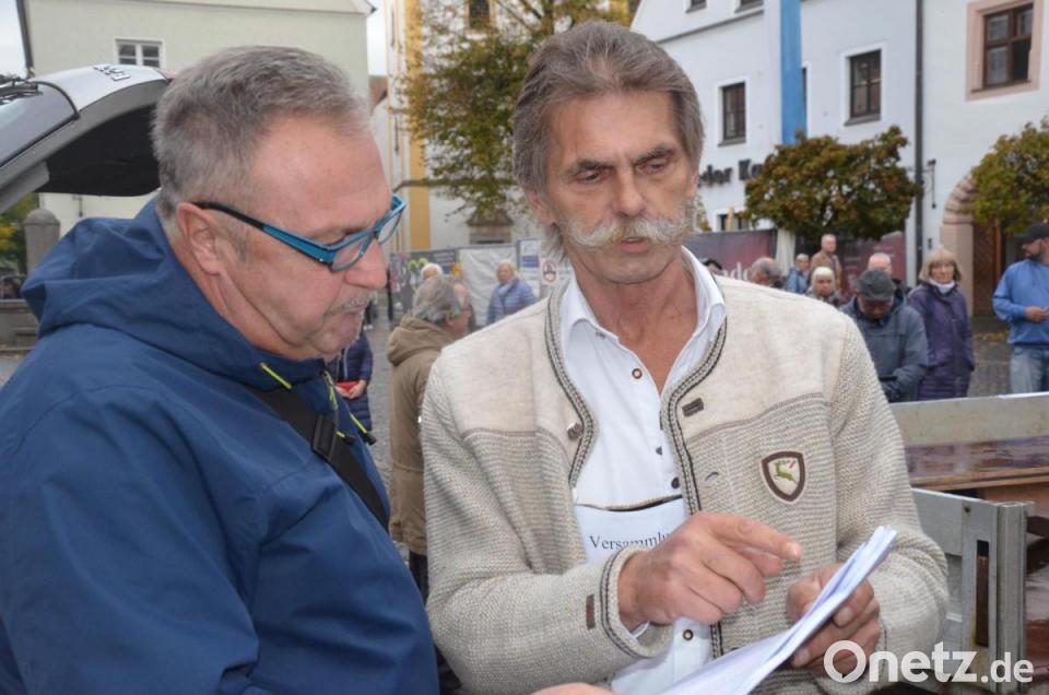 „In Deutschland brodelt es“, glaubt Helmut Bauer. Deshalb hat der gelernte Steinmetzmeister aus Eslarn die Protestbewegung „Das grüne Band“ gegründet. Am Samstag gingen seine Anhänger vor dem Alten Rathaus in Stellung. Warum? „Es kocht in den Leuten.“ Die Bürger würden langsam erkennen, dass die Bundesregierung eine „furchtbare“ Politik mache. „Nur Abzocke“.