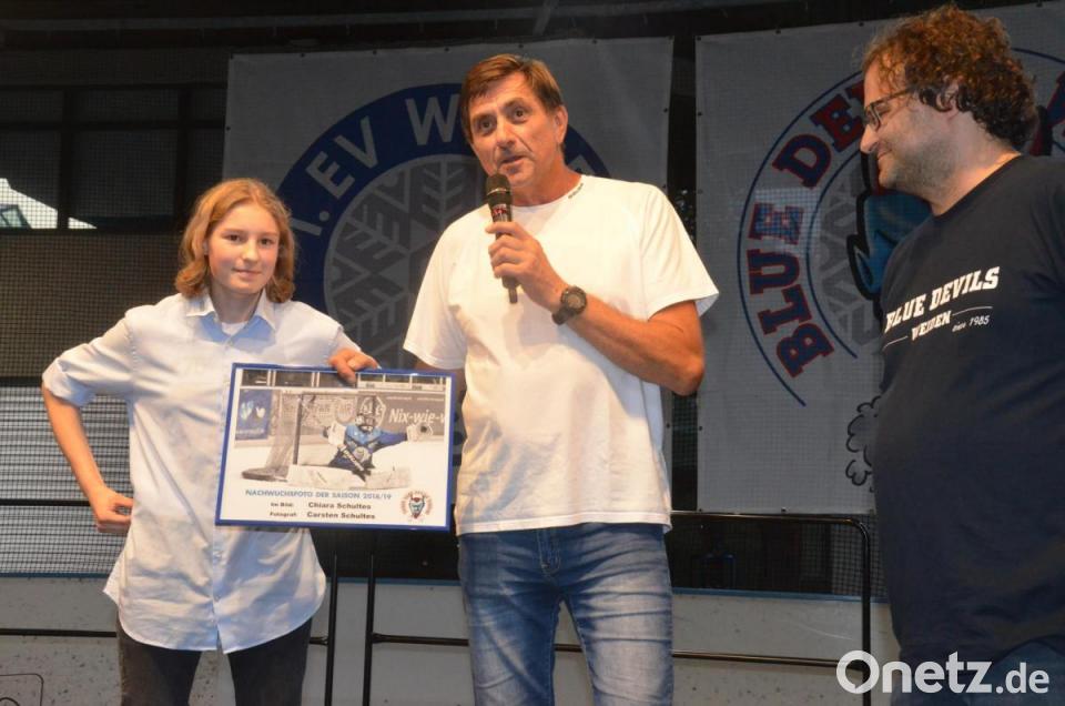 Mit jeweils goldenen Ehrennadeln ausgezeichnet wurden die Spieler der U 20 für die Bayerische Meisterschaft 2019 im Eishockey und den damit verbundenen Aufstieg in die DNL 3. Chiara Schultes erhielt den ersten Preis für das Nachwuchsfoto der Saison 2018/19. Ausgewertet wurde eine Umfrage über Facebook. Das Foto, das die talentierte Keeperin beim Einsatz zeigt, wurde von ihrem Vater Carsten Schultes geschossen.