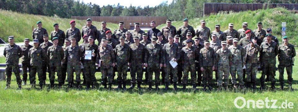 Besonders erfreut zeigte sich Kreisvorsitzender Manfred Zettl über die Teilnahme der US-Militärpolizei aus Grafenwöhr. Zwei Übungen mussten die Reservisten zum Erwerb der Schützenschnur erfolgreich abgelegen. Mit der Pistole P8 mussten sie auf 25 Meter Entfernung mit fünf Schuss drei Ziele treffen. Schwieriger gestaltete sich die Übung mit dem Sturmgewehr G36: Mit 16 Patronen, vier verschiedenen Stellungen bei vier unterschiedlichen Entfernungen sollten die 16 Scheiben bekämpft werden.