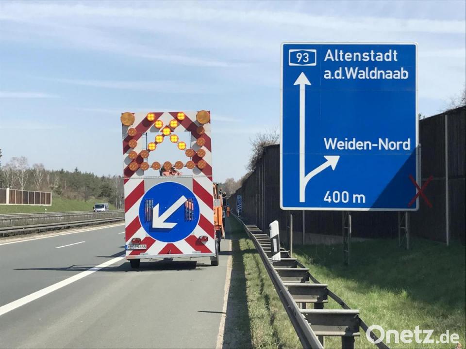 Die Anschlussstelle Weiden-Nord der Autobahn 93 in Fahrtrichtung Hof ist von Sonntag, 2. Mai, bis Donnerstag, 6. Mai, gesperrt. Im selben Zeitraum ist der rechte Fahrstreifen auf einer Strecke von 800 Metern nicht befahrbar. Der Verkehr wird einspurig an der Baustelle vorbeigeleitet. Vom 10. bis 11. Mai ist dann die linke Fahrspur betroffen, ebenfalls ausschließlich in Fahrtrichtung Hof. Grund für die Sperrungen sind Arbeiten am Straßenbelag. Hier hätten sich, so heißt es von der Außenstelle Bayreuth der Autobahn GmbH, Ausbrüche und Risse gebildet. Diese würden nun abgefräst und die Strecke neu asphaltiert. Wie sehr der Belag in Mitleidenschaft gezogen wurde, werde sich erst während der Arbeiten zeigen, sagt Bauleiter Christian Schmidt. "Es zeichnet sich aber schon von oben ab, dass noch tiefer gefräst werden muss." Kleine Flickarbeiten mit Kaltasphalt reichten jetzt in jedem Fall nicht mehr aus. Schuld sind Alter und Verschleiß der Strecke durch Schwerverkehr.