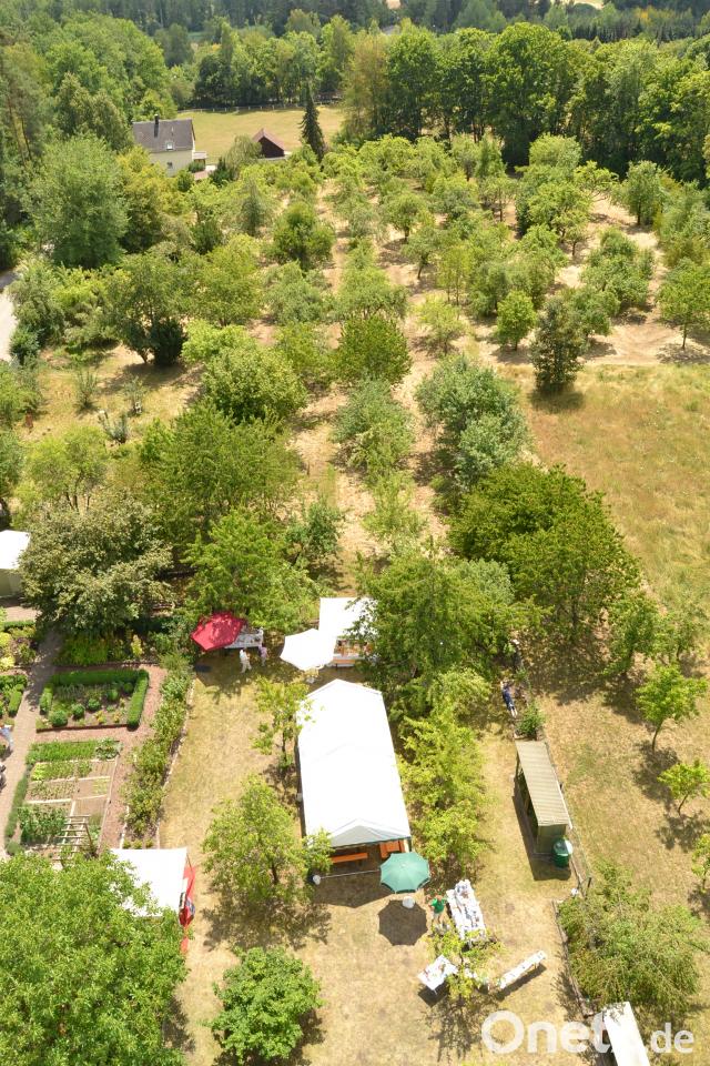 Den 14 000 Quadratmeter großen Obstgarten, der an den Lehr- und Schaugarten anschließt, schmückten Keramiken von Künstlerin Andrea Weiß (Neudorf). Ein Bücherflohmarkt, vorwiegend mit Garten-und Kochliteratur, eine Hüpfburg und Kinderschminken vervollständigten das Angebot. Am Nachmittag bot die Freiwillige Feuerwehr kostenlos Rundblicke über das blühende Gelände. Getränke und vorzügliche Speisen wurden von den Damen des Vereins angeboten. Letztere waren allerdings wegen des großen Besucheransturms schon gegen Mittag vergriffen. Kaffee und Kuchen blieben gute Alternativen.