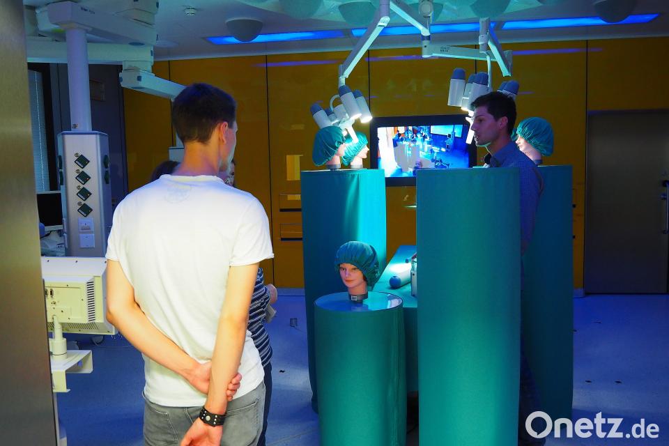 Fünf Stunden konnten die Besucher die Hochschule, den Technologie-Campus und das E-House erkunden. „Kuriositäten des Steuerrechts“ waren in einer der Vorlesungen zu hören. Eine andere befasste sich damit, welche Kunden für ein Unternehmen besonders interessant sind und wie man sich gegen Risikokunden absichern kann. Die Rede war auch vom „digitalen Zwilling“ und vom Eye-Tracking, mit der der Kunde ausgespäht werden kann. Mit Robotern konnte kommuniziert, ein Überraschungsei im Computertomographen durchleuchtet und ein kompletter Operationsraum mit all seiner Technik besichtigt werden.