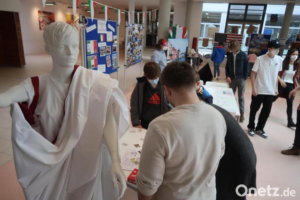 Nicht fehlen durften die gesellschaftswissenschaftlichen Fächer wie Geschichte, das diesmal digital vorgestellt wurde, und natürlich die Kunst. In der Osthalle präsentierte sich das Unterstufentheater mit Live-Musik, in der Westhalle informierten Elternbeirat und Schulorganisation. Im Erdgeschoss war ein Musterklassenzimmer aufgebaut. Nebenan gab es Puppenspiel und Schulpsychologie.