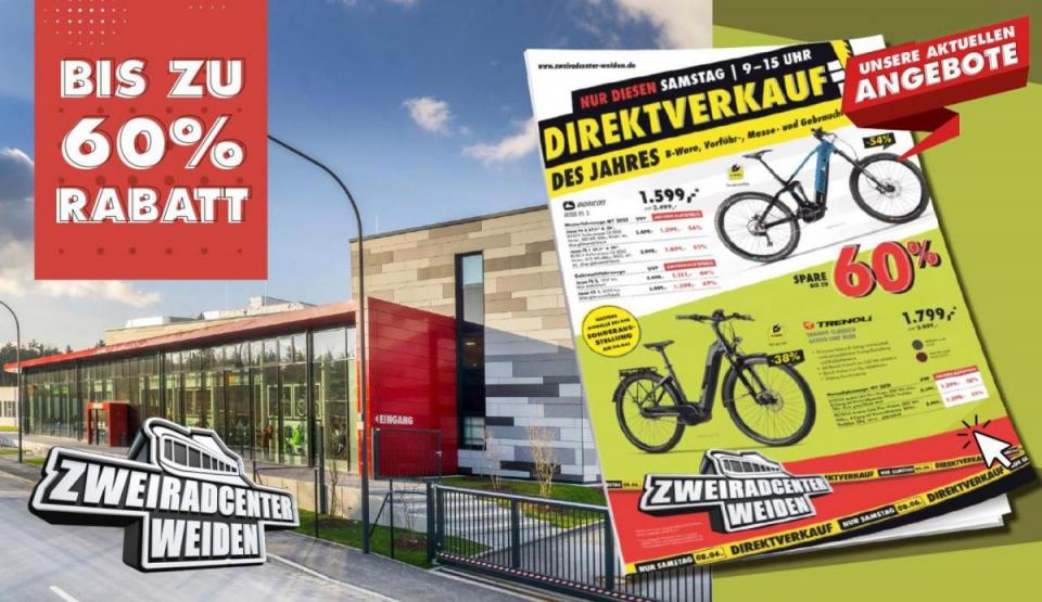 Am Samstag, 8. Juni 2024, findet von 9 bis 15 Uhr ein exklusiver Abverkauf hochwertiger Zweiräder statt. Diese Aktion bietet die einmalige Gelegenheit, hochwertige Bikes zu stark reduzierten Preisen zu erwerben. Während der Sonderausstellung im Zweiradcenter Weiden (Am Forst 17b, Weiden) haben Sie die Möglichkeit eine breite Auswahl an B-Ware, Vorführ-, Messe- und Gebrauchtfahrzeugen zu besichtigen und zu testen.