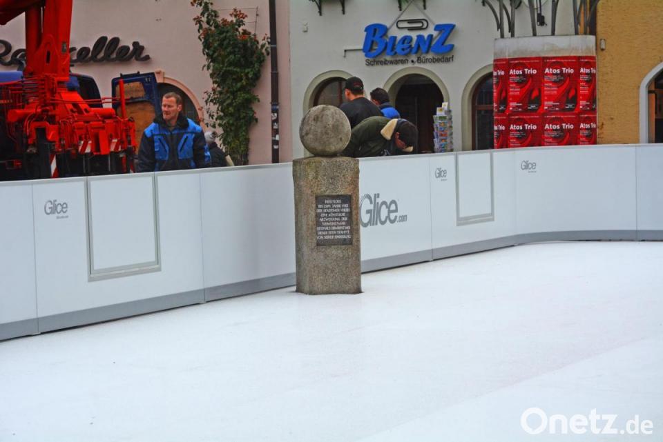 Mit dem adventlichen Budenzauber scheint es wie verhext. Erst der Ärger, weil die Stadt den Glühweinstand der Familie Renner nicht mehr wollte. Neue Attraktionen sollten her - wie eben die Schlittschuhfläche. Doch auch da ist der Widerstand größer als vermutet: Wie das berühmte kleine Dorf im von Römern besetzten Gallien ragt die Granitsäule aus der glatten Bahn heraus. Das Denkmal erinnert an den Stadtbach, der hier bis 1912 floss. Stadtsprecher Norbert Schmieglitz verspricht, dass das Hindernis bis zur Eröffnung gepolstert wird, damit der Eislaufspaß nicht zum Ritt auf der Kanonenkugel wird. Umkurven müssen kleine und große Schlittschuhfans die alte Bacheinfassung auf jeden Fall, erkennen werden sie sie aber nicht mehr. Denn der Betreiber plant, sie als Schneemann zu tarnen. Fakt ist, die Leute freuen sich auf die sportliche Betätigung, und die gepolsterte Stele wird für Lacher an der Bande sorgen.