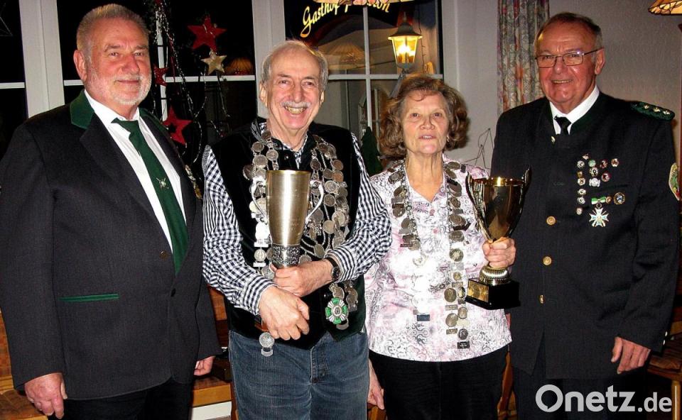 Schützenmeister Franz Fuhrmann überreichte nach einem gemeinsamen Essen im Gasthof Riebel in Etzenricht die Wertungen für die Ergebnisse Meisterscheibe auf Luftgewehr (LG). Karl Schmid holte sich den 1. Platz mit zweimal 98 Ringen vor Franz Fuhrmann, der einmal 98 und einmal 97 Ringe schoss. Auf den 3. Platz kam Ludwig Friedmann. Auf Glück (LG) gewann Franz Fuhrmann mit einem 26 Teiler vor Doris Zetzl (42T) und 3. Karl Schmid mit einem 50 Teiler.