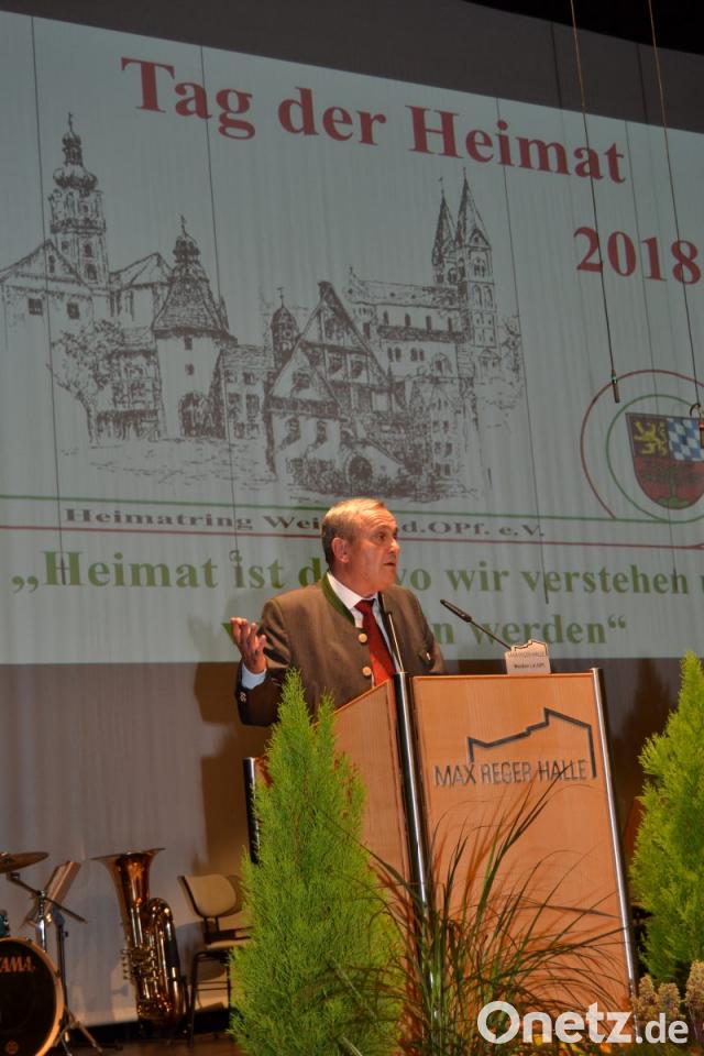Der „Tag der Heimat“ in der Max- Reger- Halle stand unter dem Motto „Heimat ist da, wo wir verstehen und verstanden werden“ und wurde zu einer großartigen Kundgebung gegen Krieg, Vertreibung und Fluchtursachen. „Die aktuellen Bilder und Nachrichten aus vielen Teilen der Welt erinnern uns daran: Heimat kann von einem auf den anderen Tag verloren gehen“, so Magerl. Schirmherr Oberbürgermeister Kurt Seggewiß erinnerte an die Zeit nach dem Krieg, als zwölf Millionen Deutsche auf der Flucht waren, Bayern zwei Millionen aufgenommen hatte und 8624 Vertriebene nach Weiden gekommen waren. „Hätten meine Vorgänger Schelter, Bauer und Schröpf nicht damals Wohnungen gebaut, Arbeit geschaffen und für bessere Lebensverhältnisse für diese Menschen gesorgt, so wäre Weiden heute kein Oberzentrum, sondern eine mittlere Kleinstadt mit vielleicht 20 000 Einwohnern“ sagte Seggewiß unter tosendem Applaus.