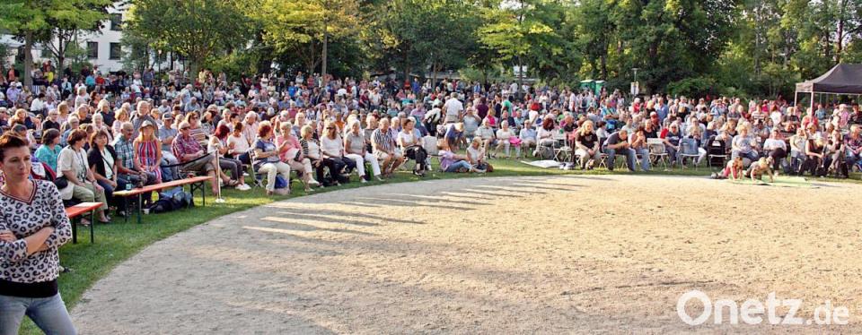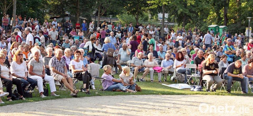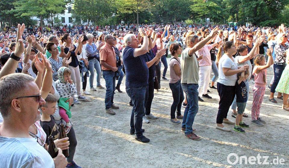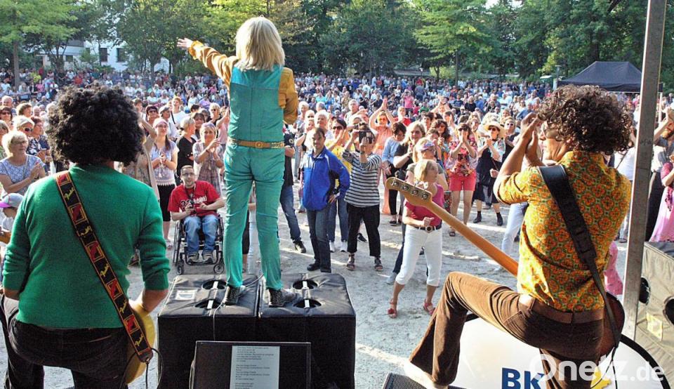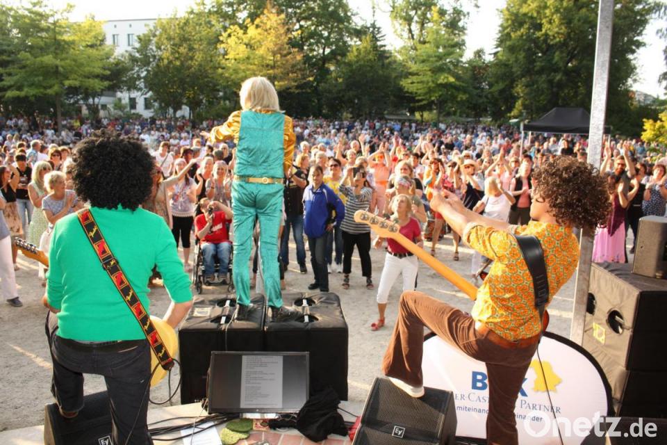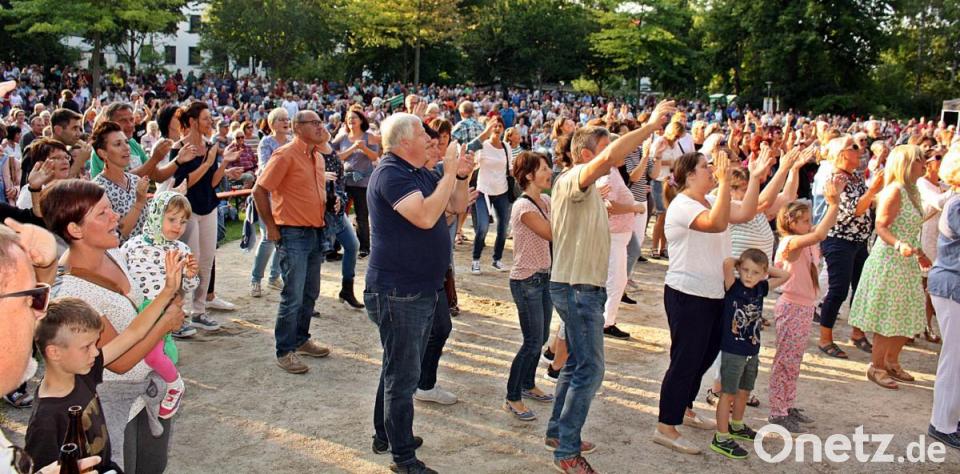 Bereits vor neun Jahren hatten sie ein Gastspiel gegeben. Am Mittwochabend waren sie zurück, die Mitglieder der "Golden Glitter Band". Eventmanagerin Getrud Wittmann begrüßte die Band, mit der bis zu 3000 Menschen bei der Sommerserenade im Max-Reger-Park ein Festival der Liebe feierten. Vor der Bühne tummelten sich fast nur Zuhörerinnen. Und die Kommentare für die Giganten des Schlagers lauteten "großartig", "einzig", "einfach Kult".