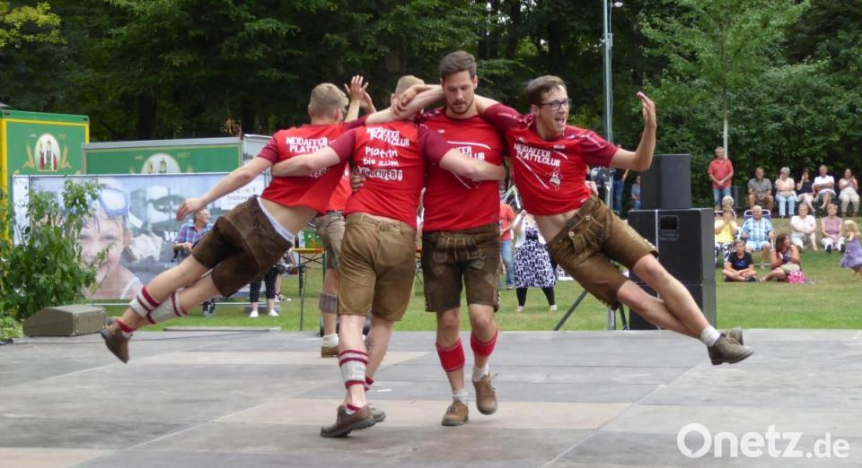 Erfreulicherweise interessiert sich die Jugend wieder für Traditionen, wie beispielsweise das Aufstellen des Kirwa-Baums und das Austanzen des Kirwapaars. Eine Reihe flotter Burschen aus Neudorf bei Luhe formierte sich vor Jahren zum "Neidaffer Plattlclub". Verteilt im Publikum begannen sie zur Playback-Musik mit einem Schuhplattler von "DeSchoWieda" und tanzten sich auf die Bühne mit Andreas Gabalier und seinem "Hulapalu". Ihre ausgereifte Choreographie und Akrobatik begeisterte das Publikum.