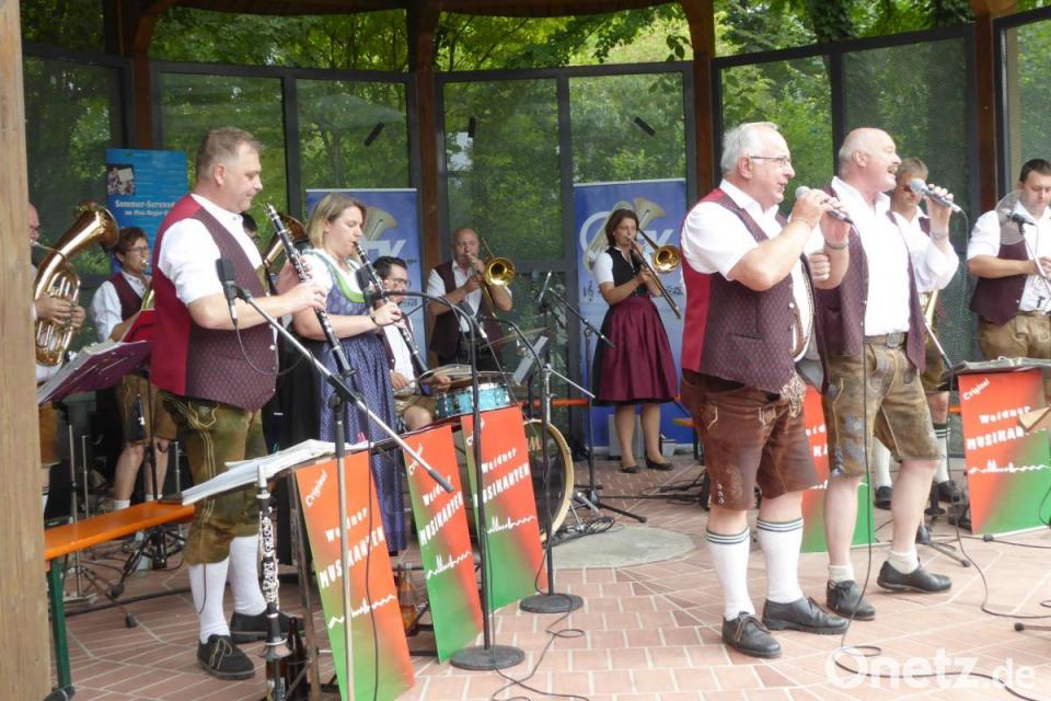 Traditioneller böhmischer Blasmusik im feinen, weichen Klang der "Egerländer Musikanten" haben sich die "Weidener Musikanten" unter Leitung von Hubert Rupprecht verschrieben. Kein Wunder, dass schon mal zwei ältere Damen dazu ein Tänzchen wagten. In ihrem Repertoire hatte die Stadtkapelle verschiedene Polkas. Zuletzt erreichte der Orchesterleiter zusammen mit Heiner Nachtmann die Herzen der Besucher durch den gefühlvollen Gesang zum Walzer "Schau das Alpenglüh'n" von F. W. Rust. Die Bayernhymne beendete den Nachmittag.