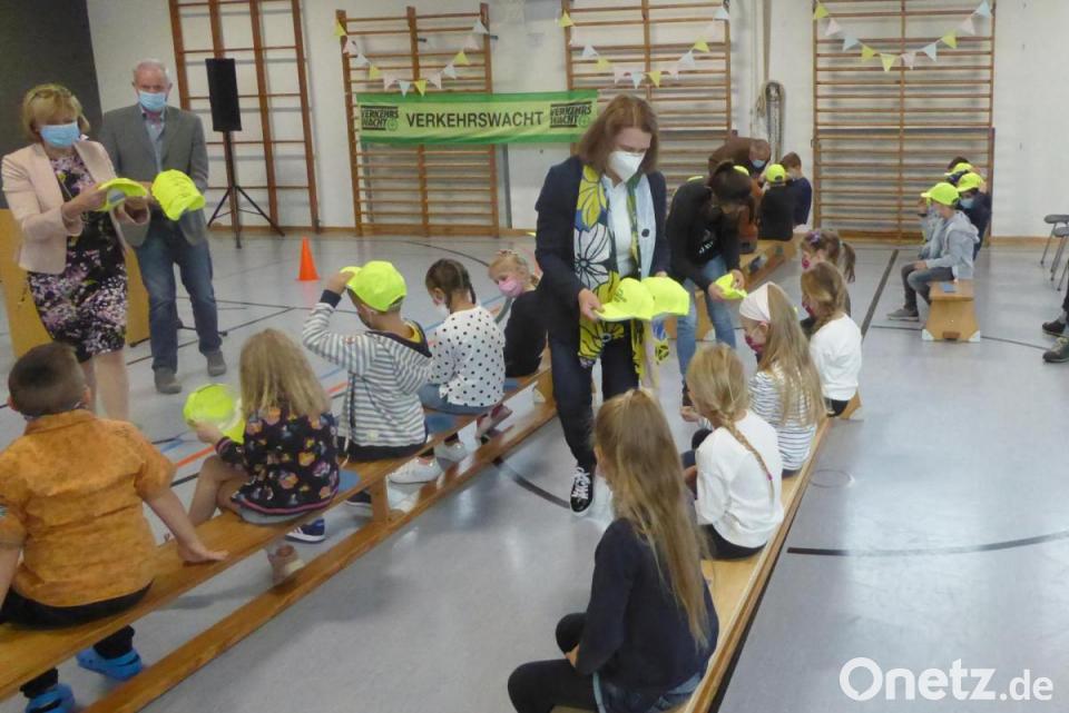 Zum Schluss bekamen die Abc-Schützen die von der Firma Zweiradcenter gesponserten gelben Caps , die gerade in der kommenden dunklen Jahreszeit die Sicherheit erhöhen werden.