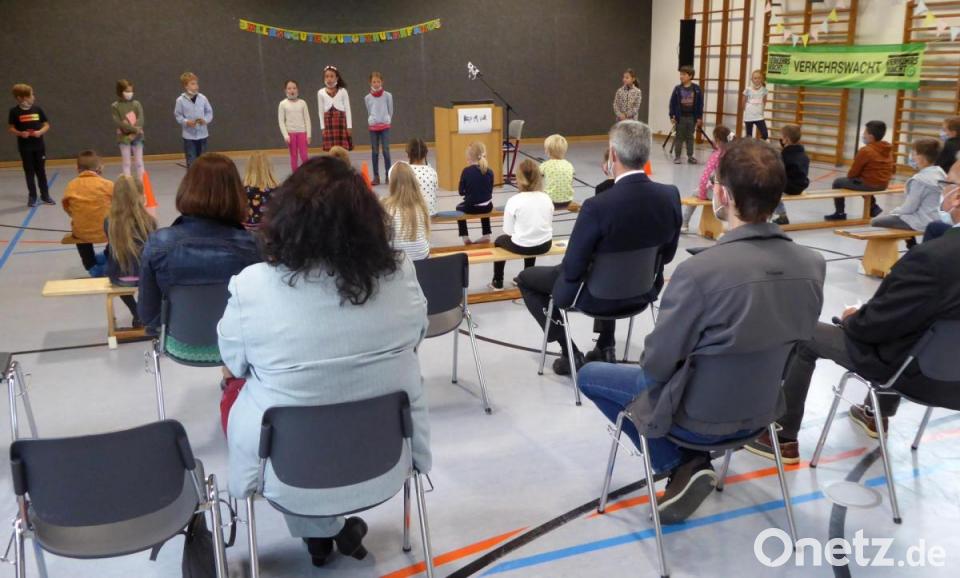 Verkehrswacht-Vorsitzender und Polizeidirektor Klaus Müller sprach von bayernweit 649 Schulunfällen 2019, davon 4 in Weiden. Heuer gäbe es in der Stadt bisher zwei. Jeder Unfall sei einer zuviel. Deshalb, so wandte er sich an die 1a, die das Sprechstück „Hurra, ich bin ein Schulkind“ vorgetragen hatte, müsse man selbst bei grüner Ampel aufmerksam sein, denn andere Menschen können auch Fehler machen. Sein Dank galt den vielen Polizeibeamten, die noch bis Ende September extra für die Sicherheit der Schüler bereitstehen.