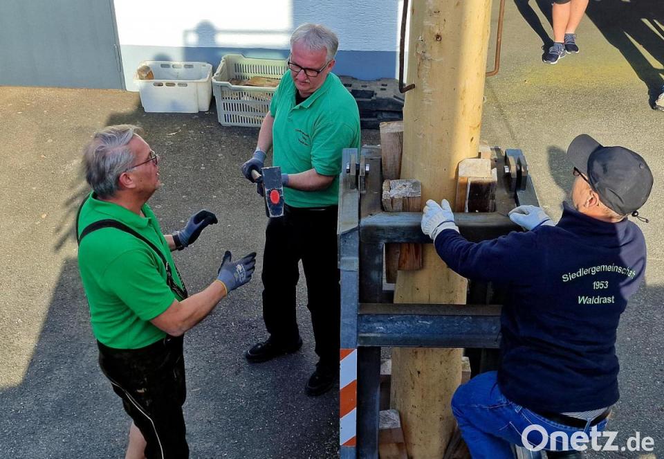 Am vergangenen Wochenende feierte die Siedlergemeinschaft Waldrast ihr 70-jähriges Bestehen. In diese Feierlichkeiten eingebunden hatte der Vorstand auch die Maibaumaufstellung vor dem Gerätehaus. Nun wehen die Bänder und Girlanden wieder an der Krone des Maibaumes über dem Weidener Westen. Die Siedlerfrauen und Kinder hatten geholfen, die Baumspitze zu schmücken. Die Firma Einhäupl hatte geholfen den Baum mit dem Kran in die Senkrechte zu stellen. Hatten die Mitglieder früher auf dem „Strieglgrundstück“ den Baum mit „Schwalben“ in die Höhe gehoben, so hebt nun der Autokran den Baum in die Halterung.
