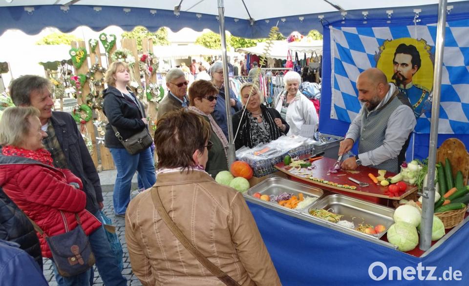 Die etwa 70 Marktstände zogen sich vom Oberen bis zum Unteren Tor auf 850 Metern Länge, wie Marktleiter Peter Rackl verlauten ließ. Er hat bereits seine Fühler zum Münchner Oktoberfest und der Fürther Kirchweih ausgestreckt, um Fieranten und Fahrgeschäfte für Weiden zu buchen. Seit 20 Jahren kommt Händler Valentin Vielberth aus Nürnberg nach Weiden. Er präsentierte am Sonntag wieder unterhaltsam seine multifunktionellen Gemüseschneider aus bayerischer Produktion. Am Nachmittag war auf dem Marktplatz stellenweise kein Durchkommen.