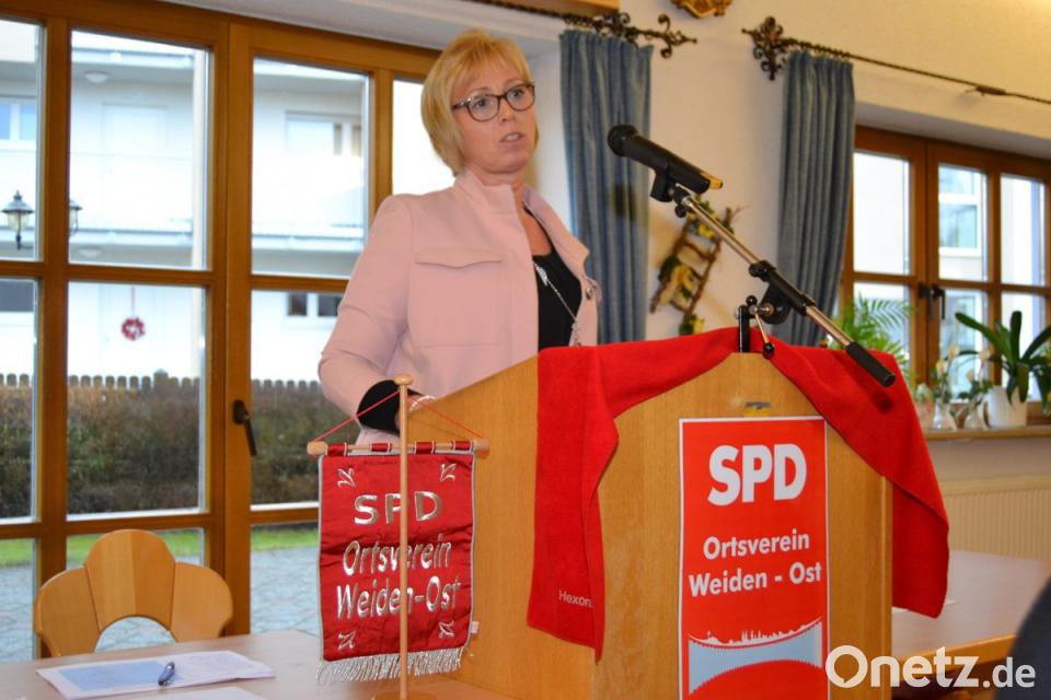 SPD-Stadtverbandsvorsitzende Sabine Zeidler erinnerte an den Mauerfall vor 30 Jahren, die Verkündung des Grundgesetzes vor 70 Jahren und den Jahrestag der Weimarer Verfassung vor 100 Jahren, die nach wenigen Jahren durch die Faschisten den Todesstoß bekommen habe. Es gelte, die freiheitlich-demokratische Grundordnung gegen Angriffe, vor allem von rechts, zu verteidigen. Die Stadträtin ging auf die AfD ein, die ein Frauenbild wie vor Jahrhunderten propagiere, Steuererleichterungen für Reiche fordere und deren „selbsternannte Saubermänner“ einen Skandal nach dem anderen hervorrufen würden. Zeidler erinnerte an die Erfolge ihrer Partei, forderte aber eine Rückkehr zu den Prinzipien der Sozialdemokratie. Beispielsweise am Wohnungsmarkt erkenne man, dass „der Markt nicht alles regelt“, sondern dass es gesetzlicher Eingriffe bedürfe. Bei den Kommunalwahlen am 15. März 2020 seien die Ziele erstens Jens Meyer als Oberbürgermeister durchzusetzen, zweitens die größte Fraktion im Weidener Stadtrat zu werden und sich dadurch drittens das Recht auf einen weiteren Bürgermeister zu sichern. Alle befreundeten Organisationen bat Zeidler, engagiert mit zu helfen.