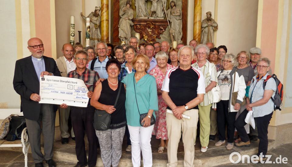 (rdo) Marienbad war die erste Station der "Freunde von Maria Kulm". Dort besuchten sie den Park der Miniaturschlösser, Burgen und bedeutenden Klöster Böhmens auf dem Marianky, dem 758 Meter hohen Hausberg der Weidener Partnerstadt. Nach dem Mittagessen ging es zum Musikbrunnen an der Kolonnade. Diesmal wurde die eigens von Petr Hapka komponierte Brunnensymphonie gespielt. In Maria Kulm angekommen, begrüßten Propst Milan Kucera und Bürgermeister Miroslav Hruza die Besucher. Nach einer Andacht in der Gnadenkapelle und der Kaffeestunde im Kreuzgang besichtigten die Gäste einen Teil der noch schadhaften, aber auch der neu renovierten Räume in der Propstei. Zur Erneuerung der Heiligenfiguren der Wallfahrtskirche gab es eine Spende von 500 Euro für den Kreuzherrenorden. Der Besuch endete mit einer Einladung zum Quirinfest der Pfarrgemeinde Püchersreuth am 22. Juli.