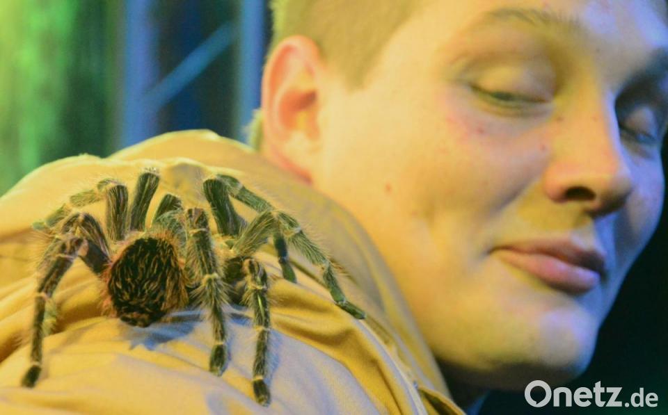 Eine quicklebendige brasilianische Riesenvogelspinne mit einem nicht aussprechbaren lateinischen Namen am Hals zu haben, ist nichts für Phobiker. Anders ist das bei Kai. Dem macht das gar nichts aus. Er kennt seine Kuscheltiere. Kai ist der Spiderman bei Familie Frank, die seit Donnerstag ihr Spinnennetz über den neuen Festplatz gespannt hat. "Ihr Biss entspricht dem eines Wespenstiches", erklärt sein Chef Danny Frank. "Aber Leute, die gegen Wespenstiche allergisch sind, sind auch gegen Spinnenbisse allergisch." Bis Sonntag, 12. März, können im Palastzelt 50 Spinnen besichtigt werden. In 20 weiteren Terrarien leben Insekten, Krabben, Schnecken und wandernde Blätter.