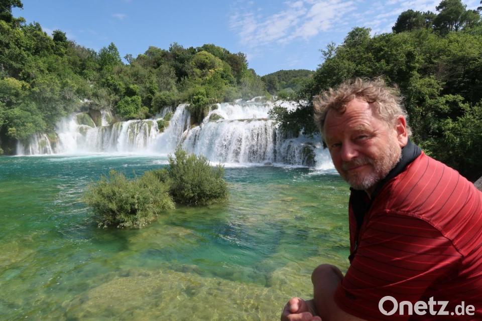 Wichtige Szenen wurden damals an den Plitvicer Seen gedreht. Klar, dass hier die Suche des 64-jährigen beginnt. Und Wilfahrt tut das nicht nur auf den ausgelatschten Touri-Pfaden. Wer mit dem Outdoor-Mann unterwegs ist, wird unweigerlich zum Waldläufer. Er war schon öfter hier. „Dort oben ist mein Lieblingspunkt. Von dort aus sieht man zwei in sich spiegelnde Seen und einen Wasserfall.“ Dort oben? Das bedeutet einen Umweg von einer Stunde, beachtliche Steigungen, umgestürzte Bäume und fast undurchdringliches Dickicht. Aber der Blick ins Tal ist wirklich überwältigend.