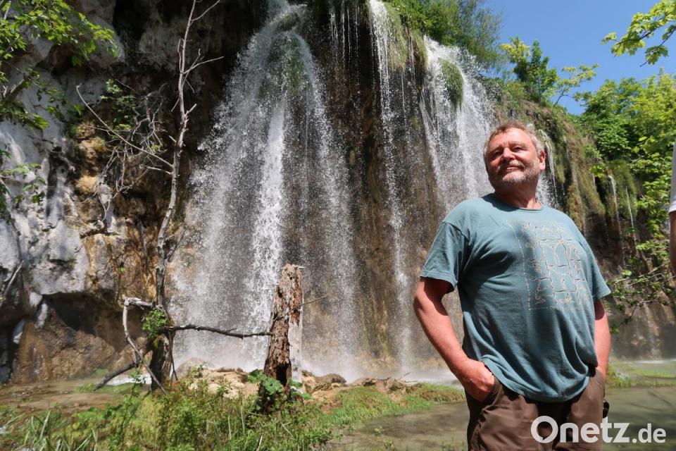 Wilfahrt ist gut vorbereitet. Die Schlüsselszene der Befreiung von Götz George und Karin Dor in "Der Schatz im Silbersee" fand am Wasserfall Mali Prstavac im Bereich der Oberen Seen statt. Hier wurde damals auch das Foto für das Filmplakat geschossen. Der Film wurde im August gedreht, die Seen führten damals weniger Wasser. Deshalb hatte das Team mehr Platz zum drehen. Der Baum, an den die beiden gefesselt waren, ist heute ein Stumpf. Der Zugang zur Schatzhöhle ist bei Wilfahrts Besuch wegen Hochwassers gesperrt. Wenige Meter dahinter: Der große Wasserfall, an dem Winnetou zu Beginn des zweiten Teils vorbeiritt.