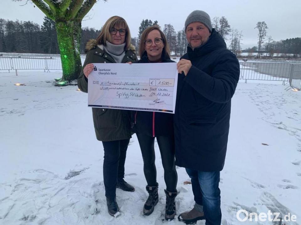 Die SpVgg Weiden sammelte durch Aktionen bei den Fußballmannschaften und den Dance Kids 1500 Euro im Rahmen der „Kinderwunschzettelaktion der Tafel Weiden“. Wie der Verein selbst mitteilte, überreichte der erste Vorsitzende Michael Kurz der Initiatorin der Wichtel-Bastel-Aktion, Ilona Forster, den Scheck und hatte noch 100 Freikarten für Spiele der ersten und zweiten Mannschaft im Gepäck. „Wir freuen uns diese tolle Aktion unterstützen zu können und somit Kindern zu helfen, denen es aktuell nicht so gut geht“, so Kurz, der mit der Vereinsmitarbeiterin Susanne Böhm der Schwimmvereinsvorsitzenden Ilona Forster den Scheck überreichte.