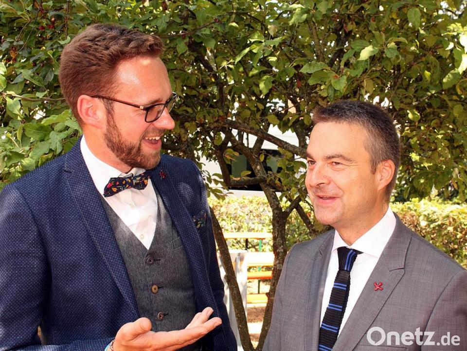 Den weltlichen Teil eröffneten der Neupriester und Stadtpfarrer Markus Schmid noch vor dem Zwölf-Uhr-Läuten. Der Festbetrieb fand rund um die Josefkirche mit einem Mittagessen statt. Es gab Schweinebraten mit Knödel und Krautsalat und die Grillschmankerln. Dazu spielte die "Original Letzauer Blasmusik". Am Nachmittag versteigerten die Priester viermal gemalte Bilder aus dem Nachlass von Manfred Teichmann, die er der Pfarrei vermacht hatte. In seinem Sinne sollten sie die pfarrliche Arbeit in St. Josef unterstützen. Begehrt war ein Schmetterlingsbild, das 50 Euro einbrachte.