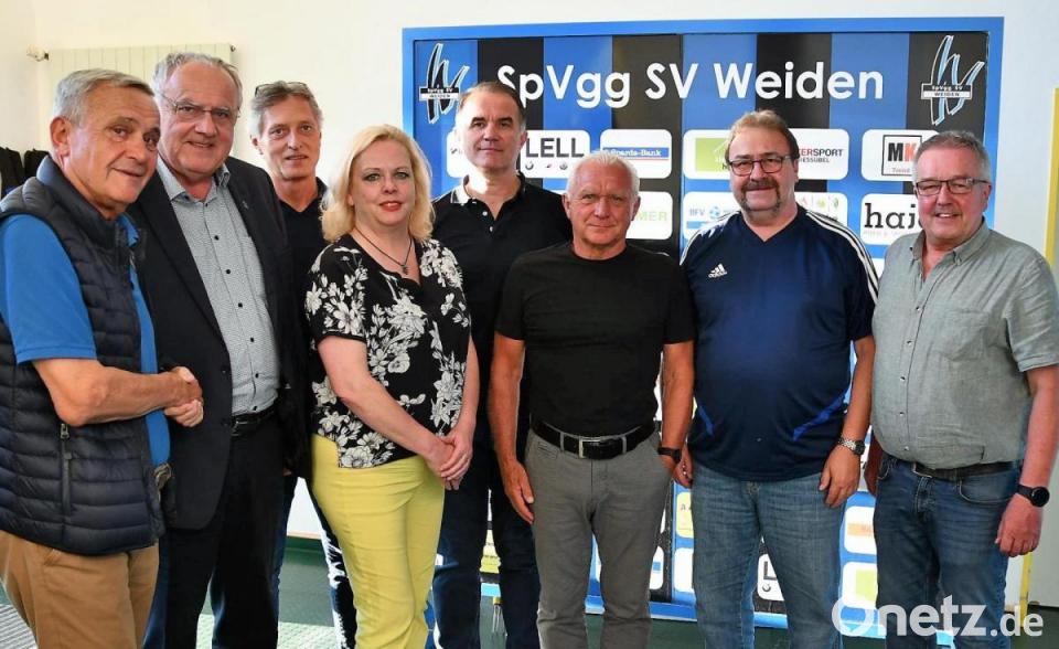 Alt-Oberbürgermeister Kurt Seggewiß und neuer zweiter Vorsitzender der SpVgg SV übergab sein Amt als Verwaltungsratsvorsitzender an Bürgermeister Lothar Höher. Bei der konstituierenden Sitzung wurde einstimmig Alexandros Smardenkas zum stellvertretenden Verwaltungsratsvorsitzenden gewählt. Höher blickte auf die vergangene Saison zurück: „Es war ein harter Kampf bis zum letzten Spieltag. Im vorherigen Jahr hatten wir Pech wegen der Coronapause und sind nicht aufgestiegen, und nun hatten wir Glück und sind zu Recht in der Fußball Bayernliga“.
