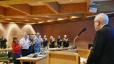 Selten sah man den Großen Sitzungssaal im Neuen Rathaus so voll. Weggefährten, Kollegen, Vertreter aus Kirche, Politik, Polizei, Wirtschaft und der komplette Stadtrat wohnten der Feierstunde bei, die nicht zuletzt aufgrund der musikalischen Umrahmung eine sehr persönliche Note erhielt. Hubmann hatte seinen langjährigen Freund Peter Pollinger, früher Chorleiter am Augustinus-Gymnasium, in die Pflicht genommen. Mit Hits aus den 60er und 70er Jahren, unter anderem "Super Trouper" von ABBA rückte er den scheidenden Rechtsdezernenten ein letztes Mal ins "Scheinwerferlicht".