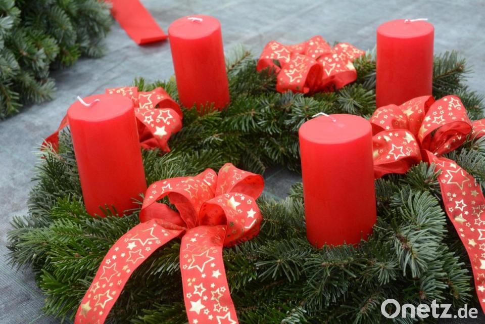 Wer selber noch einen Adventskranz binden möchte, greift am besten zur haltbaren Nordmanntanne oder Buchsbaum. "Da piekt nichts und es lässt sich gut verarbeiten", sagt Leymann. Als Basis dient ein Strohriemen. Bei einem liegenden Kranz bleibe die Unterseite frei (ein von der Decke hängender Kranz werde "voll gebunden"). "Die Zweige werden überlappend innen und außen um den Reif gelegt. Das lässt ihn fülliger erscheinen. Jeden Zweig zwei Mal mit Wickeldraht umwickeln, dann den nächsten Zweig etwas versetzt anlegen. Bis der Strohring ganz bedeckt ist", sagt der Gartenfachmann. Zum Schluss folgt nach Belieben die Deko. Wer mag, könne den ganzen Kranz noch mit Golddraht umwickeln.