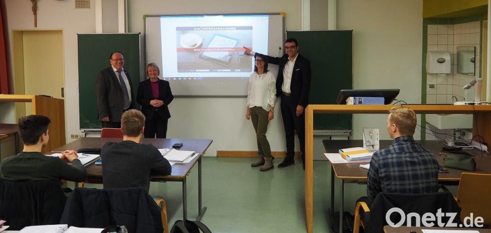 Einzelheiten wurden jetzt der Öffentlichkeit vorgestellt. "Förderung der digitalen Transformation im Ausbildungsberuf Bankkaufmann/-frau" lautet der offizielle Titel des Programms. Welche Kompetenzen den Berufsschülern zukünftig inhaltlich vermittelt werden, wurde mit einem praktischen Beispiel demonstriert. Martina Birner, Bereichsleiterin für Privatkunden bei der Sparkasse Oberpfalz Nord, war in die Berufsfachklasse WBA 12 gekommen und schaltete eine Verbindung mit dem Online-Finanzierungsberater der Sparkasse. An der Videowand konnte ein gut 40-minütiges Beratungsgespräch zwischen der "Kundin Theresa" aus dem Kreis der Berufsschüler und dem Online-Berater der Sparkasse verfolgt werden. "Genau diese Kompetenzen für solche Beratungsgespräche wollen wir zukünftig vermitteln" sagte Bäumler. Man könne auch von "Bankausbildung 4.0" sprechen. Wesentlichster Inhalt sei dabei, mit dem Kunden zu fast allen Themen zeit- und ortsabhängig in Kontakt zu treten. Der Investitionsplan der Europaberufsschule mit einer Kostensumme von rund 100 000 Euro beinhaltet die Anschaffung der erforderlichen Technik und Software, bauliche Maßnahmen, Raumausstattung sowie Lehrerfortbildungen. Beantragt werden die Mittel im Zuge der Digitalisierungsoffensive der Staatsregierung.