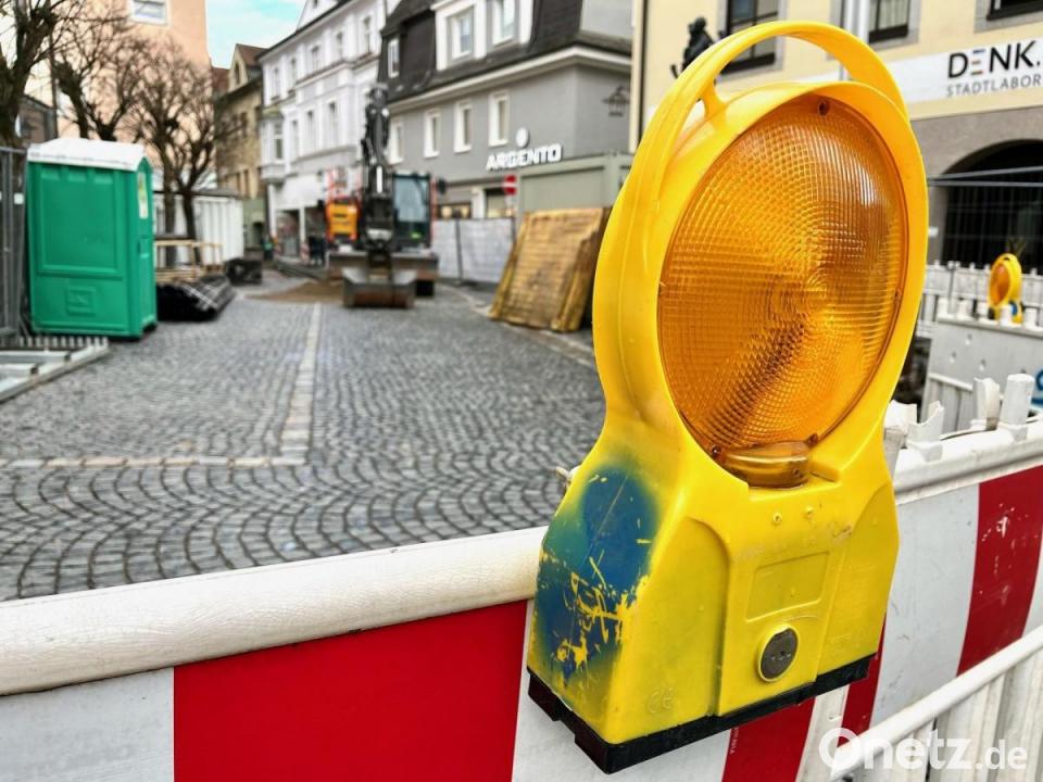 Seit Montag wird dort gewerkelt. Rund sechs Wochen sollen die Arbeiten dauern. Zunächst erledigen die Arbeiter der Stadtwerke Kanalarbeiten, danach wird das neue Granit-Pflaster in einem etwa drei Meter breiten Streifen verlegt. Ebenfalls verlegt werden auch gleich die notwendigen Leerrohre für die spätere Ertüchtigung des Stromnetzes in der Innenstadt, heißt es in einer Mitteilung der Stadt. Wenn die Bauzäune allerdings Ende April weichen, werden sie an neuer Stelle auftauchen.