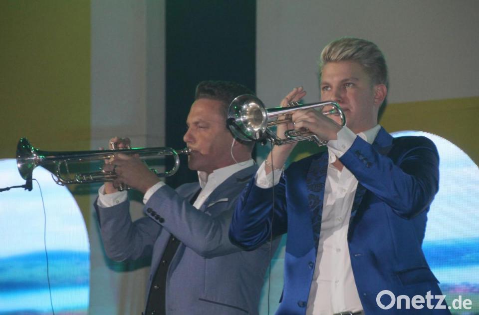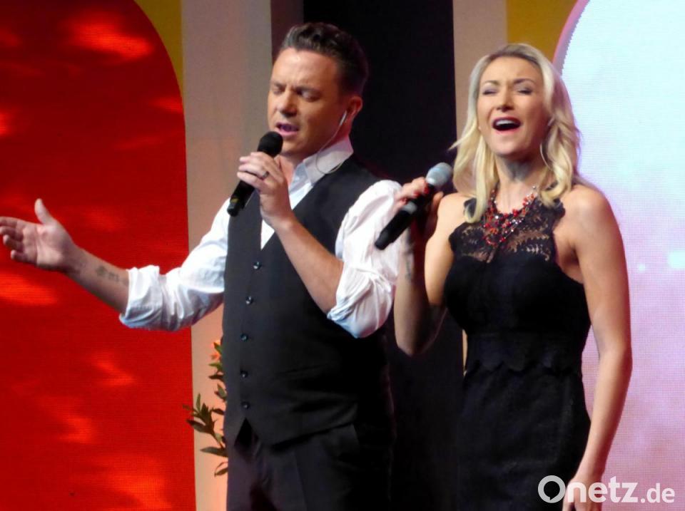 Die 31 Jahre Show- und Bühnenerfahrung von Stefan Mross merkte man auch seiner Flexibilität und seinen Songs an, sei es bei „Die kleine Kneipe“ oder „Ein Stern, der deinen Namen trägt“. Sein Stern ist Anna-Carina Woitschack, bekannt von „DSDS“, mit der er sich im November 2019 in einer TV-Show verlobt hatte. Mit heller, akzentuierter Stimme sang sie sowohl Oldies wie „Lollypop“, „Guten Morgen Sonnenschein“ und die romantische Ballade „Liebe ist wie eine Rose“ als auch Lieder aus ihrer neuen CD. Stefan und „seine Anna“ glänzten gemeinsam bei „Lo Siento“. Bei einem „Frosch im Hals“ von Anna-Carina im Duett „Fang das Licht“ bat diese um einen Schluck Wasser, worauf Stefan spontan seinen Text umformulierte („Ich hol es dir“) und erklärte: „Das ist eben live, das sieht man im Fernsehen nicht.“ Einen beeindruckenden Schlusspunkt setzten beide mit ihrer Coverversion von Leonard Cohens „Hallelujah“.