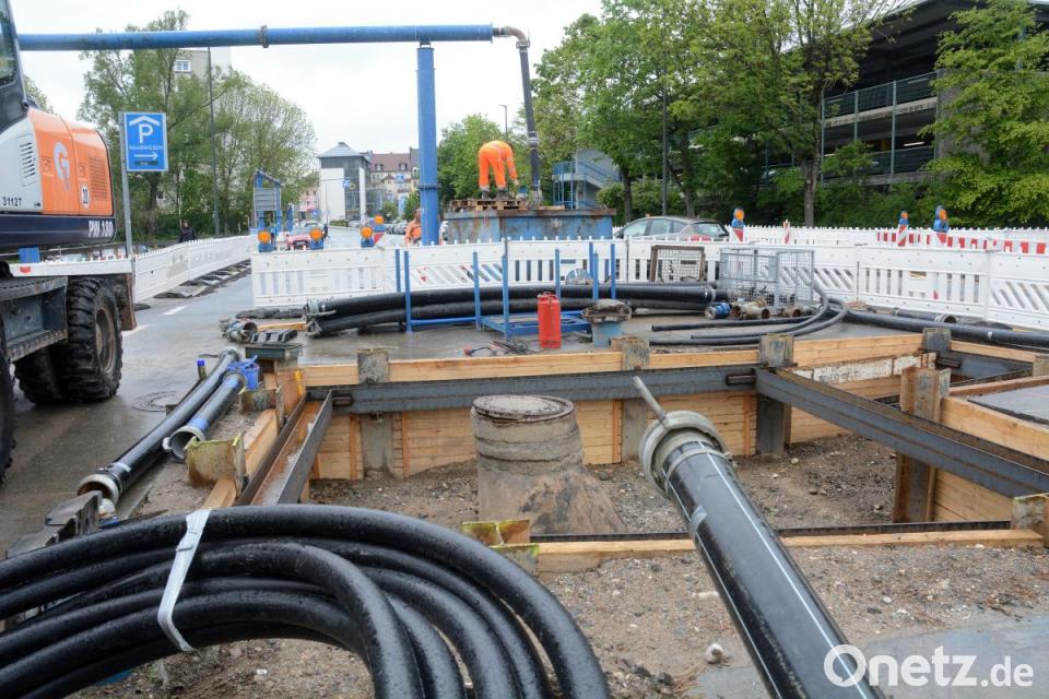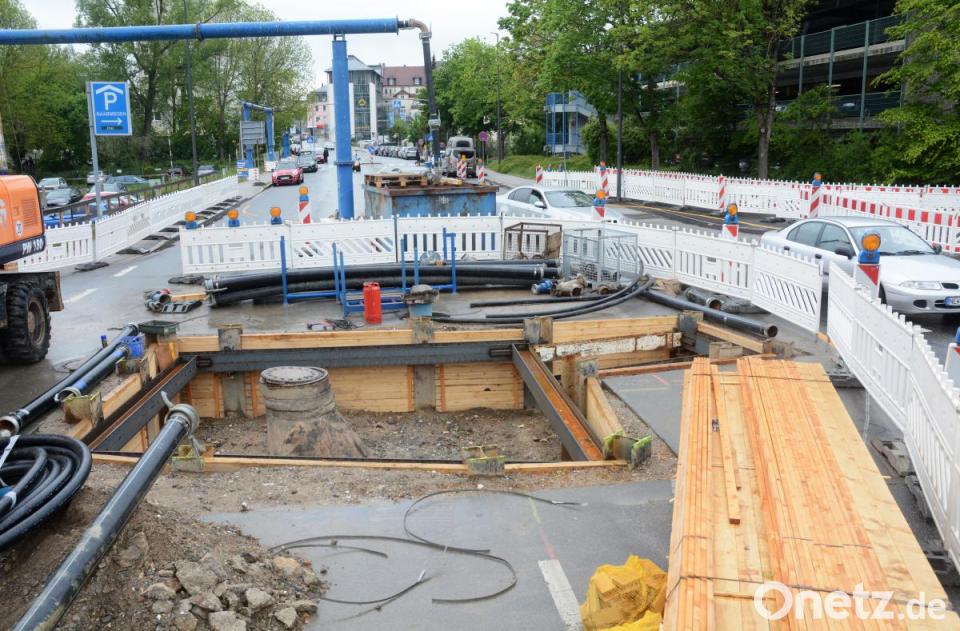 Ab Montag rückt dann der Bagger an. Bis Pfingsten dürfte es laut Krauß noch dauern, bis die Arbeiten auf die Seite des Parkdecks verlegt werden können. Entlang des Parkdecks gab es bisher keinen Mischwasserkanal, und das wird nun geändert.