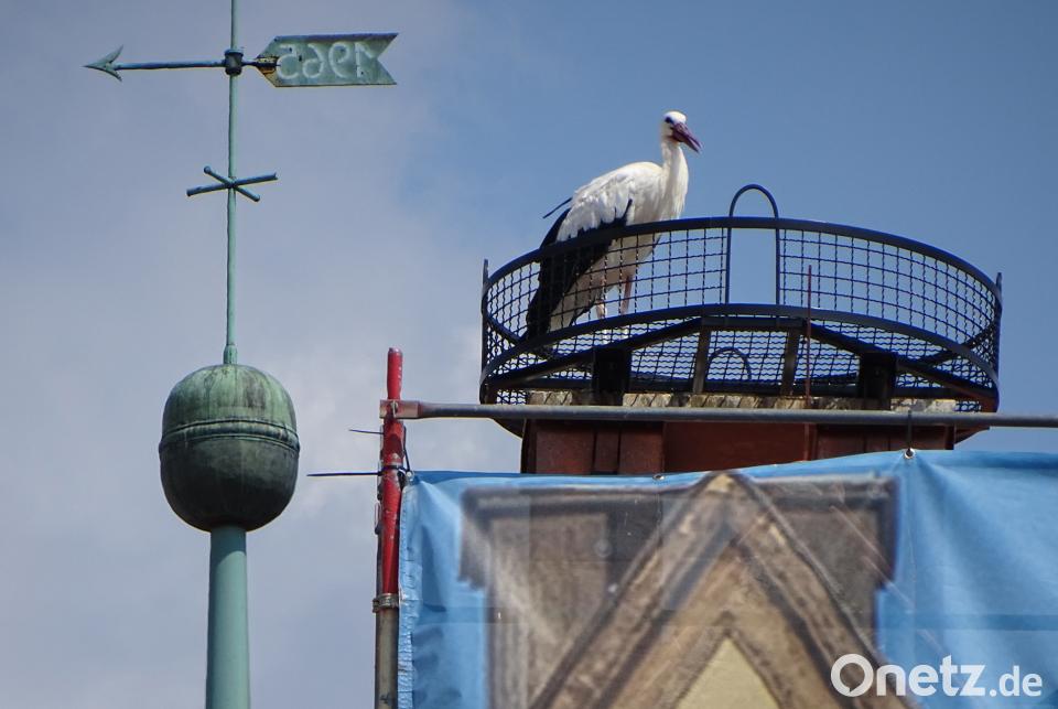 Genauer schaute sich der Storch den erst kürzlich errichteten neuen Horst auf dem Alten Rathaus an. Und offenbar gefiel es ihm sehr gut am alten und exponierten Platz, den er vermutlich bereits kannte. Der Storch putzte sich ganz ausgiebig und schaute auch den Luxuslimousinen und Brautpaaren mit Gefolge am Samstagnachmittag zu, die zum Traumdatum 18.8.18 zur Trauung vor das ehrwürdige Rathaus am Oberen Markt versammelt waren. Spannend wird es im Frühling, wenn die Störche nach dem Winter nach zurückkehren: Werden sie ihr Quartier am Alten Rathaus aufschlagen oder am Ausweichhorst am Alten Schulhaus? Oder dienen gar beide Standorte als Storchen-Domizil?