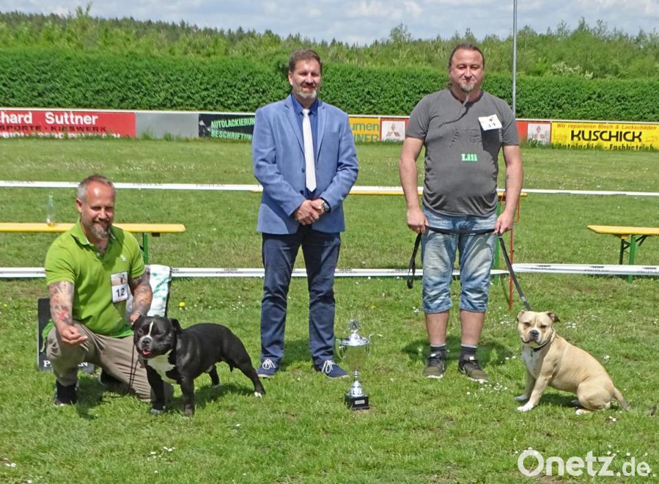Die Sieger der Best-of-Show: "Bester der Rasse Exotic Bulldog" und "bester Rüde" ist "Stonebull Batman" von Gabriela und Peter Kick aus Bergnetsreuth bei Floß. Die Kategorie "Beste Hündin" gewann "Stonebull Mystique" (Eigentümer: Martin Neuber aus Pleystein), die des "Besten Veterans" "Gesa von Asgard Bulls" (Sabine und Stefan Heines, Leppersdorf bei Dresden) und die des "Besten Rüden Old Englisch Bulldog" "Hagakure" aus Tschechien.