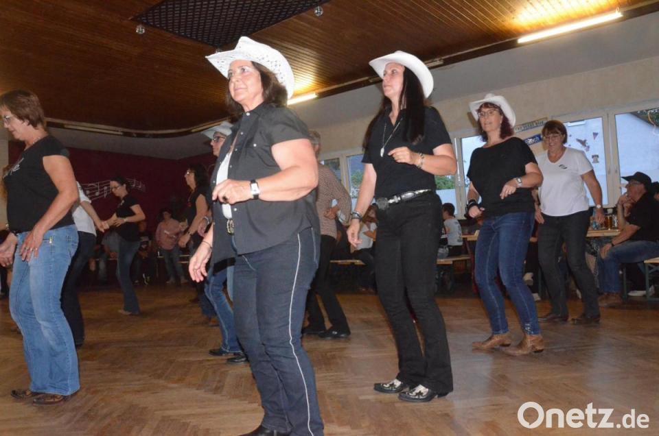 Am Samstagabend organisierten die Schwingenden Hüte ihr sechstes „Line Dance Fest“. Wegen der unsicheren Wetterprognosen hatte man die Veranstaltung kurzfristig vom Schätzlerbad – „auf der nassen Bühne hätten die Boots nicht gegriffen“ – ins Vereins- und Trainingslokal „Anpfiff“ in der Stockerhut verlegt.