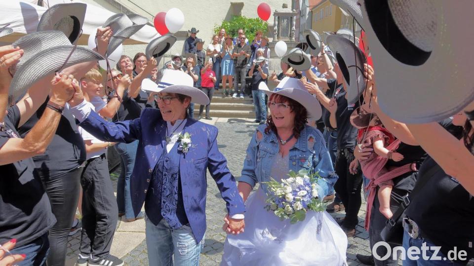 Simone Sandner und Claudia Messer haben geheiratet. Am Samstag gaben sich die beiden Vorsitzenden der Line-Dance-Gruppe "Swinging Hats" bei Kaiserwetter das Ja-Wort vor dem Weidener Standesbeamten. Das frisch gebackene Ehepaar trägt nunmehr den Namen Messer. Das Paar gründete 2012 die Tanzgruppe, die aktuell 50 Mitglieder zählt und sich einmal wöchentlich, immer donnerstags, in der Mehrzweckhalle zum Training trifft. Trainiert wird nach dem Vorbild der American Line & Western Dances. Meist wird dann auf Country und New Country Music getanzt. Manchmal auch zu Irish Folk.