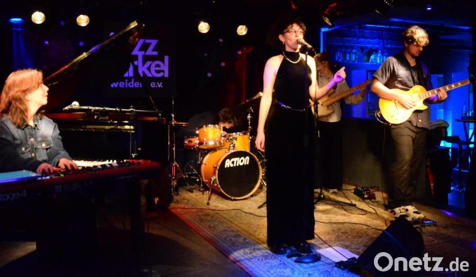 Im stimmungsvollen Ambiente des „Bistrot Paris“ setzte der Weidener Jazz-Zirkel am Freitagabend einen glänzenden Schlusspunkt unter sein Jubiläumsjahr. Die Gewinnerin des Bayerischen Jazzpreises 2025, Sängerin Teresa Luna, begeisterte gemeinsam mit ihrer Band: Victor Vollmer an der Gitarre, Käthe Johanning am Piano, Christopher Sergeant am Bass und Lenny Rehm am Schlagzeug. Die Jazz-Location war fast voll besetzt.