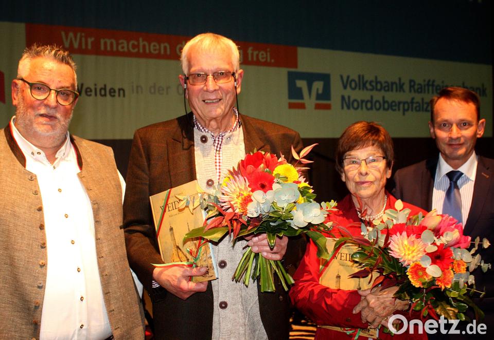 Der Vorsitzende des Seniorenbeirats, Peter Klein, und sein Team boten zum Seniorennachmittag der Stadt Weiden in der Max-Reger-Halle ein buntes Programm. Es fand viel Zuspruch. Zudem überreichte Oberbürgermeister Jens Meyer den Ehrenpreis des Seniorenbeirats. Blumen und ein Buchgeschenk erhielt Ulla Albert. Sie kümmert sich schon Jahre um Senioren, die bei Verbänden und Vereinen Mitglied sind. Vielen ist sie auch ein Begriff als ehemalige langjährige Vorsitzende des Weidener Schwimmvereins. Eine weitere Auszeichnung ging an Hansjürgen Lorenz. Er betreute den Seniorenclub Frohsinn, ist 62 Jahre ehrenamtlich beim Roten Kreuz und unterrichtet Senioren, speziell in Gedächtnistraining. Eine Ehrung ging auch in Abwesenheit an Helmut Hofmeister. Ihm wird das Buch der Stadt Weiden nachgereicht.