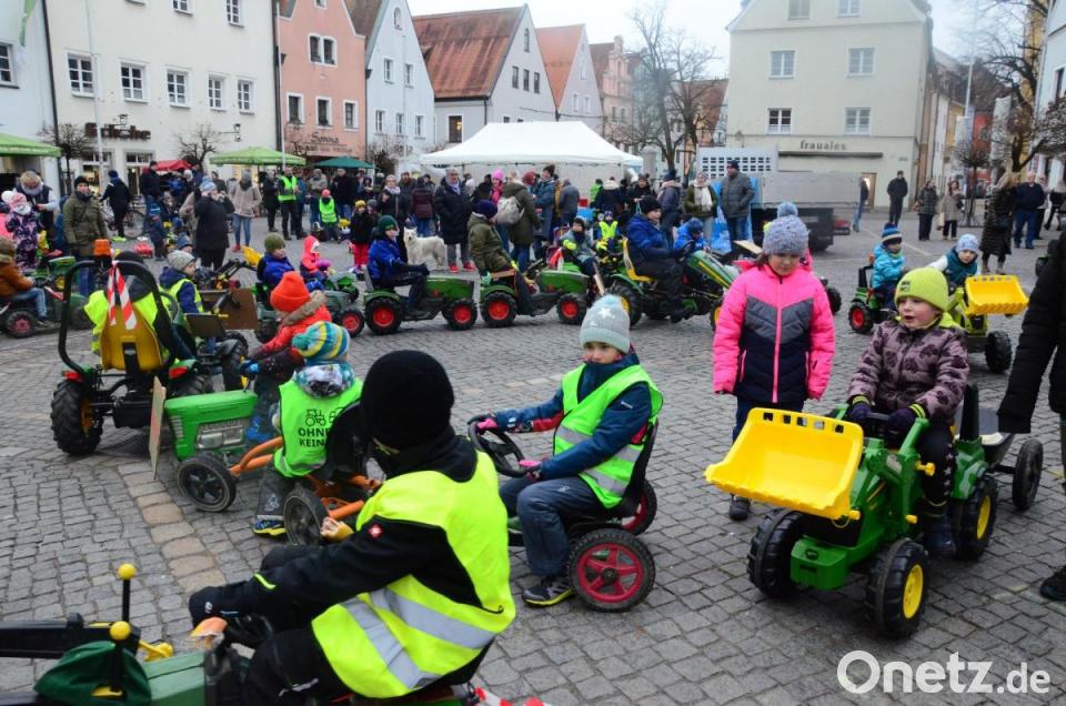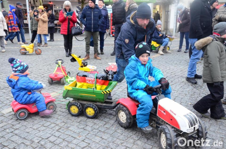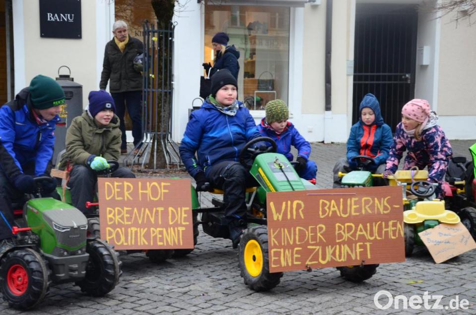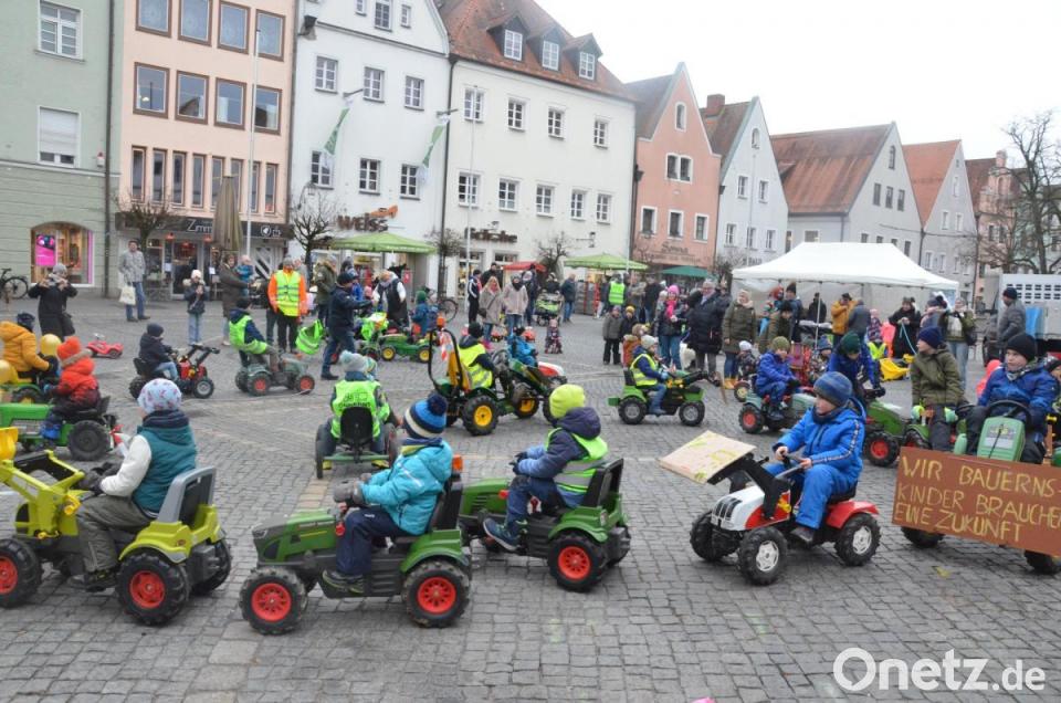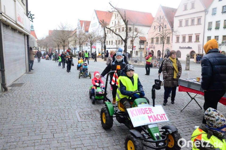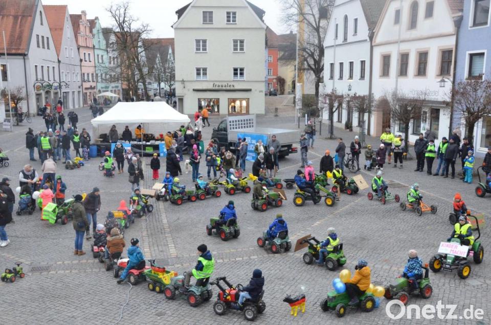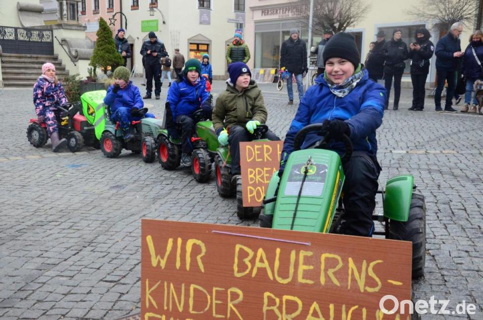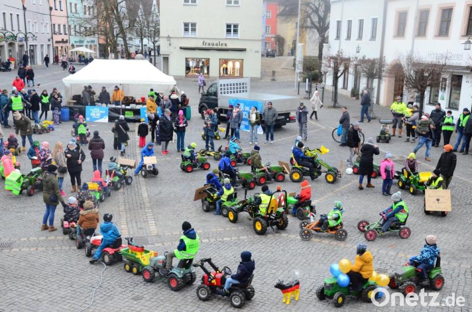 Rund 150 Kinder brausten am Samstag über den Oberen und Unteren Markt in Weiden. Mit Tretbulldogs, Kettcars und allem, was fährt. Die Aktion war der Teil der Landwirte-Proteste dieser Tage.