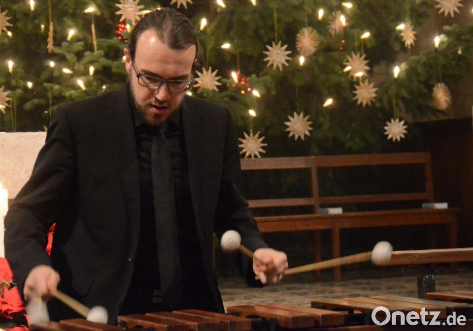 Mit seinem großangelegten „Orgelkonzert in B-Dur“ von Gottfried Walther gelang Schäffner eine stimmige und virtuose Bearbeitung des sequenzreichen Orgelsolos. Dann spielte Schlagwerker Christoph Günther auf dem Marimbaphon mit „A little Prayer“ von Evelyn Glennie mit wechselnden tonartlichen Beleuchtungen eine butterweiche Nummer.