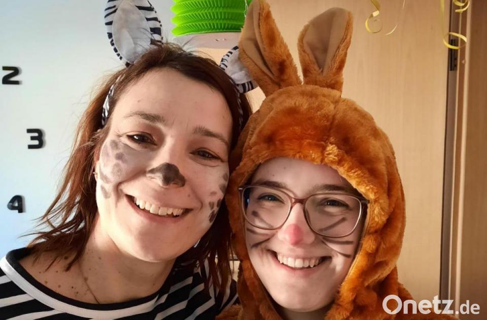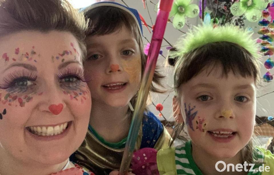 Nochmal Faschingsgaudi in Parkstein: Luisa und Laura, beide 6 Jahre alt, mit Mama Kathi. Sie sei "totaler Faschingsfan", schreibt sie.