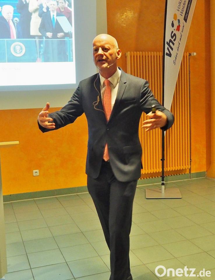 "Mein Vortrag über Trump ist im Grunde nach ein Vortrag über Deutschland", meint der Regensburger Politologen. Auf Einladung des Freundeskreises Tutzing und der Volkshochschule Weiden-Neustadt sprach der Wissenschaftler über das Thema "Donald Trump, zwei Jahre Präsident der USA - Folgen für sein Land und die Welt". Mit wissenschaftlicher Präzision analysierte Bierling die Ursachen für einen Wahlerfolg, den vorher kaum jemand für möglich gehalten hatte. "Trump profitierte von der polarisierten US-Gesellschaft." Die Polarisierung habe ihre wichtigste Ursache in der modernen Medienwelt. Sie mache es möglich, nur noch solche Nachrichten wahrzunehmen, die die eigene Meinung bestätigen.