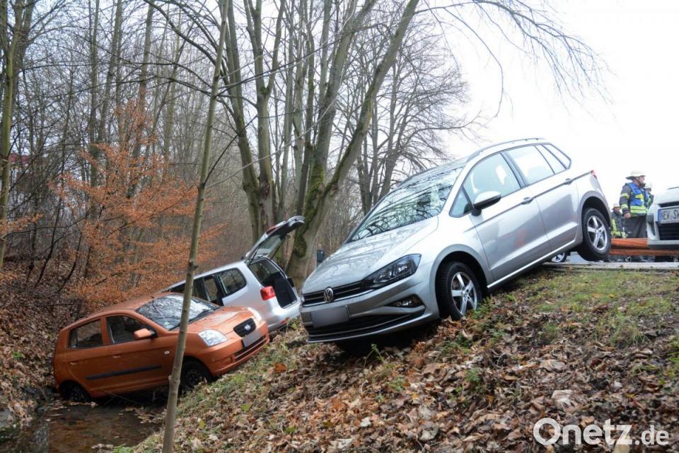 Wie die Polizei mitteilt, verlor der Senior wohl aus gesundheitlichen Gründen die Kontrolle über sein Auto. Es touchierte demnach zwei geparkte Fahrzeuge sowie zwei Betonpoller. Das brachte das Auto jedoch nicht zum Stehen. Im Gegenteil: Es fuhr ungehindert auf zwei weitere, auf dem Parkplatz abgestellte Autos. Diese wurden laut Polizei durch die Wucht des Aufpralls die Böschung zum Bach hinab geschoben. Eines der Autos blieb an der Böschung hängen, das andere sowie der Wagen des 87-Jährigen landeten im Bachlauf.