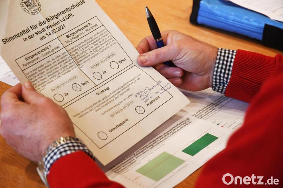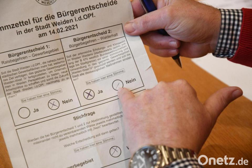 Handgeschriebene Alternativvorschläge oder die Aufforderung wegen der Corona-Pandemie abzuwarten, sorgten für ungültige Stimmzettel beim Bürgerentscheid zum Gewerbegebiet West IV in Weiden. Der Abstimmungsausschuss kam am Mittwoch zur abschließenden Sitzung zusammen.