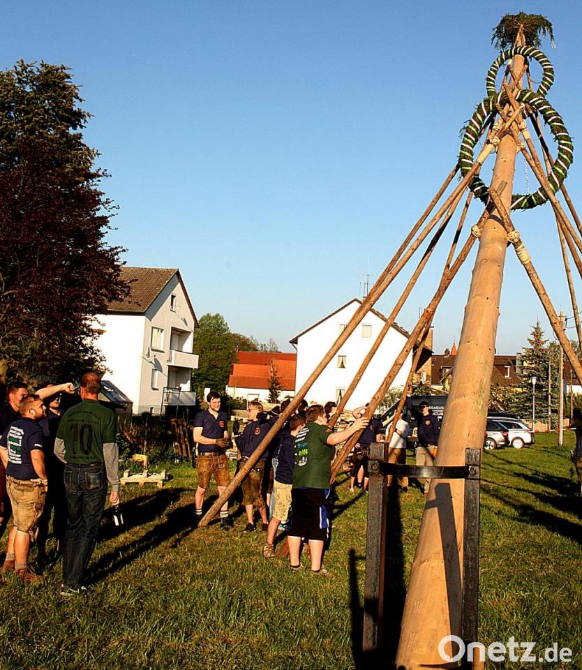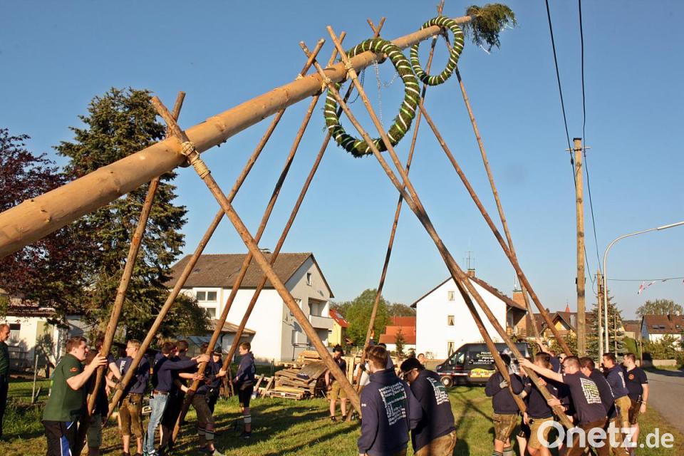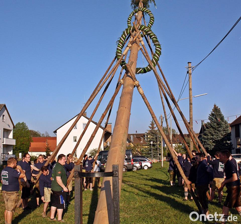 Der Vorstand organisierte 30 Burschen, Bier und Feuerholz, die hoben den Baum am Vorabend des Feiertags an, um mit den „Schwalben“ unter den dekorierten Maibaum zu kommen. „Hau ruck, hebt zugleich“, kam das Kommando.