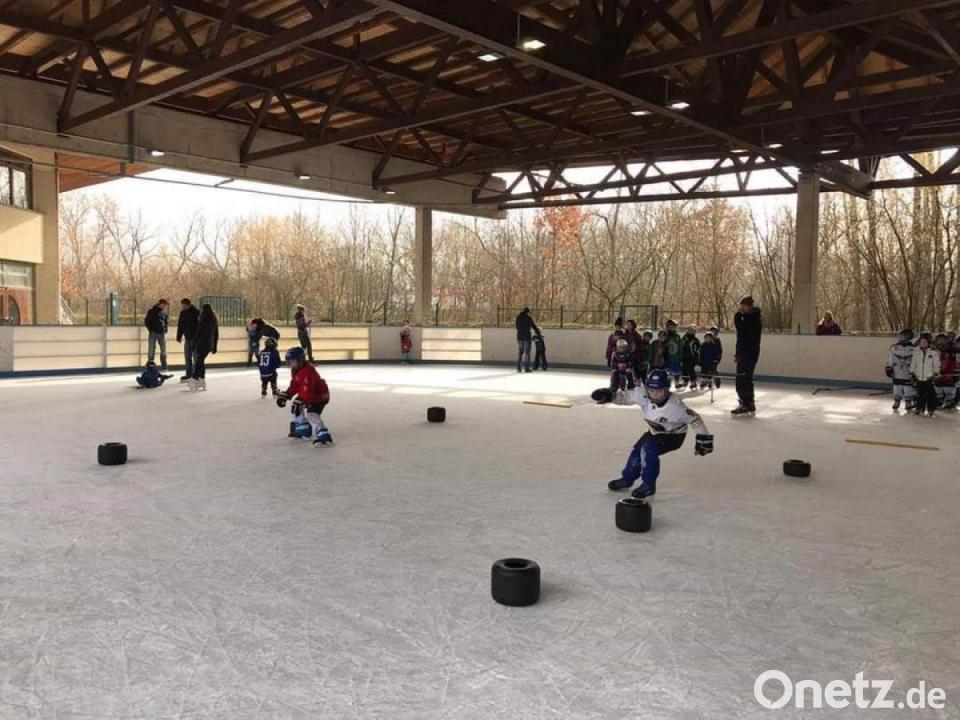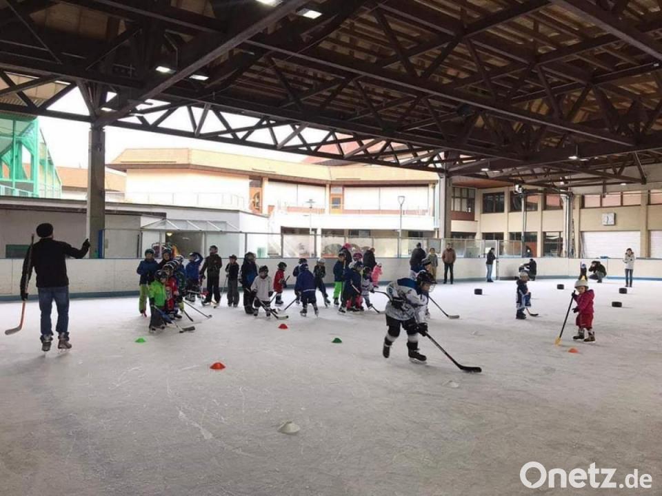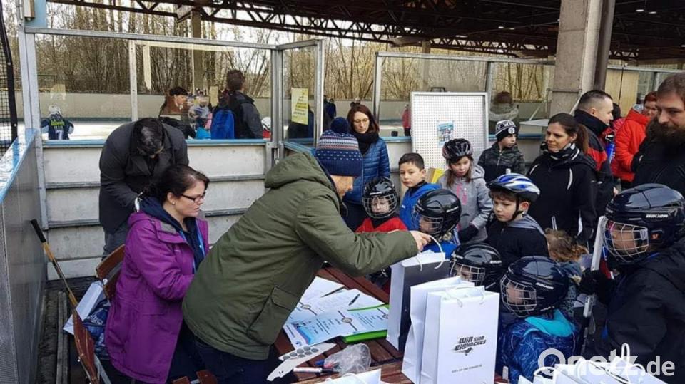 60 Kinder nahmen an der Prüfung teil. Das freute natürlich die Helfer um Boris Flamik, Thomas Baldauf, Steffi Gösl, Peter Hendrikson. Sie hoffen natürlich, dass der ein oder andere Schlittschuhläufer Gefallen am Eishockeysport findet.