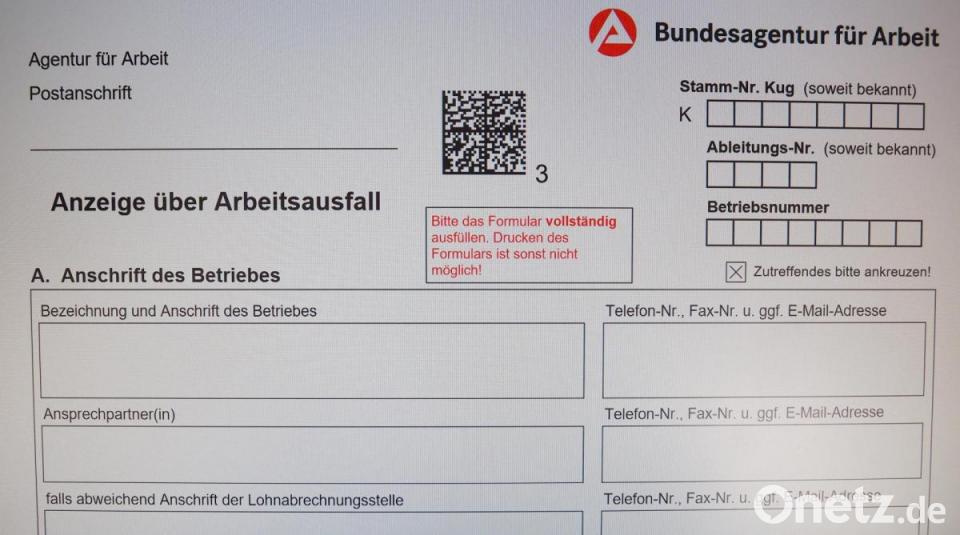 Der Arbeitsausfall muss der Agentur für Arbeit schriftlich angezeigt werden.