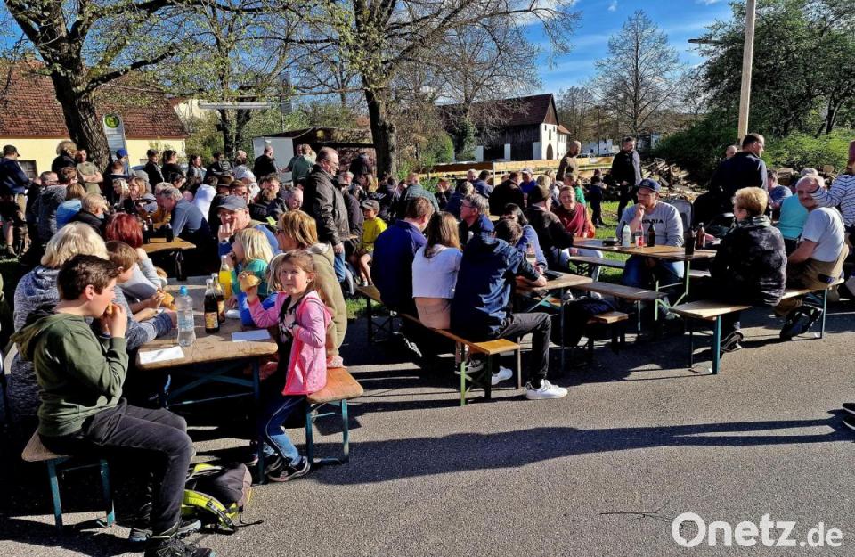 Viele Besucher beim Aufstellen des Maibaumes in Frauenricht dabei