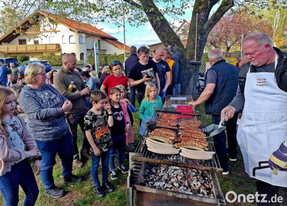 Die Dorfgemeinschaft in Frauenricht hat es auch heuer wieder geschafft eine Fichte mit 29 Metern Höhe aufzurichten. Als Frühlingssymbol ragt der Maibaum nun auch dort in die Höhe. Für die Kinder war es ein tolles Vergnügen, mit den Frauen die Bänder und Girlanden in die Baumkrone zu binden. Nach alter Sitte hoben die Männer mit acht „Schwalben“ den Baum an, die Schaufel des Traktors mit Roland Weismeier sicherte, bis die zwölf Männer den Baum unter Kontrolle in die Höhe hievten und am Boden sicherten. Markus Pausch spendierte den Baum, erst am Nachmittag wurde er aus dem Wald angekarrt. Schnell waren auch die Bänke aufgestellt, die Grillspezialitäten auf den Rost gelegt, Kaffee und Käse mit Brezen angeboten. Alle Plätze waren voll belegt und bis in die Nacht saßen die Gäste rund um den Maibaum. Das entzündete Feuer wärmte und die Wachen hielten Tapfer durch bis der frühe Morgen graute.