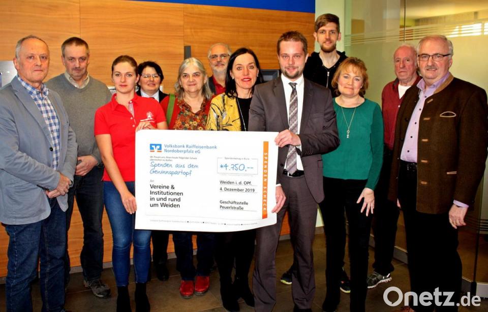 Berücksichtigt hat die Bank hauptsächlich Empfänger aus dem Weidener Westen. Insgesamt lagen 4750 Euro im großen Sack. Geschäftsstellenleiter Markus Ermer nahm das Geld aus dem Gewinnspartopf. Jeder Verein bekam 300 Euro. Berücksichtigt wurden die Rehbühlschule, die Pestalozzi-Mittelschule, die Hans-Schelter-Schule und die Stötzner-Schule, weiter die Kindergärten Maria Waldrast und St. Elisabeth. Bei den Vereinen bedankten sich die „Initiative“, das Tierheim, der VfB Weiden, der Theaterverein Berggmoi (Muglhof), die Feuerwehr Muglhof, die Skilanglaufgemeinschaft Weiden-Letzau und der ATC im AvD Weiden für die Jugendförderung. Die Kinderkrebshilfe Oberpfalz erhielt 500 Euro.